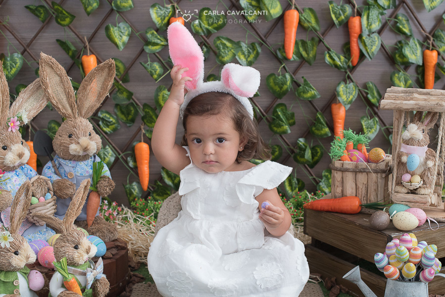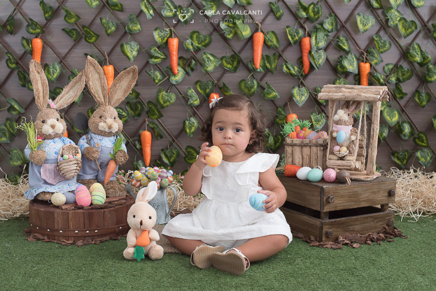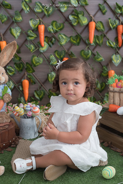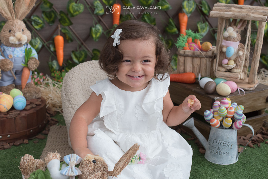 Manuela chegou tímida, mas não resistiu à alegria da Páscoa!